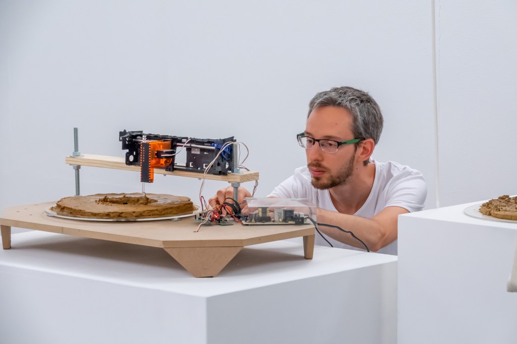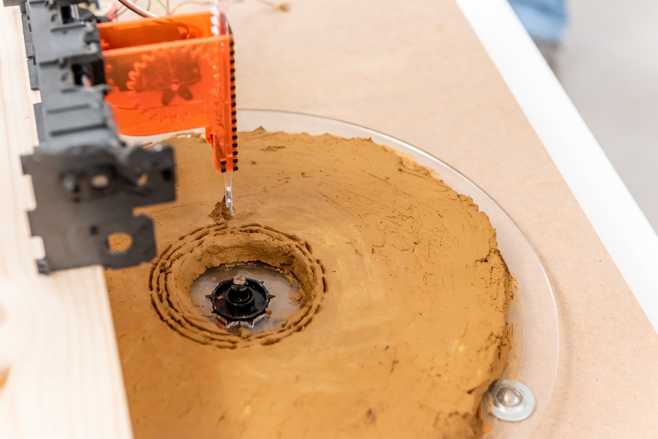 The machine was built with salvaged parts from an old dot-matrix printer. I documented the upcycling of the printer in a tutorial on Hackster.io.