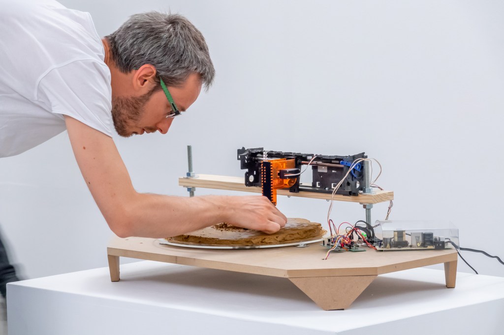 A fragment of this recording was then carved into a disc made of the same clay, by means of a custom-built machine.