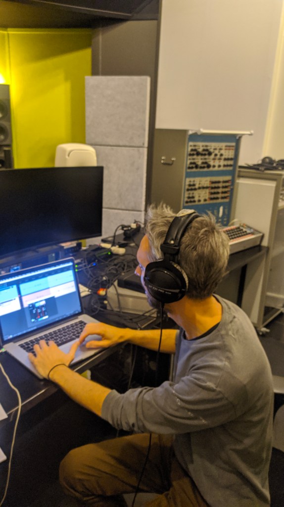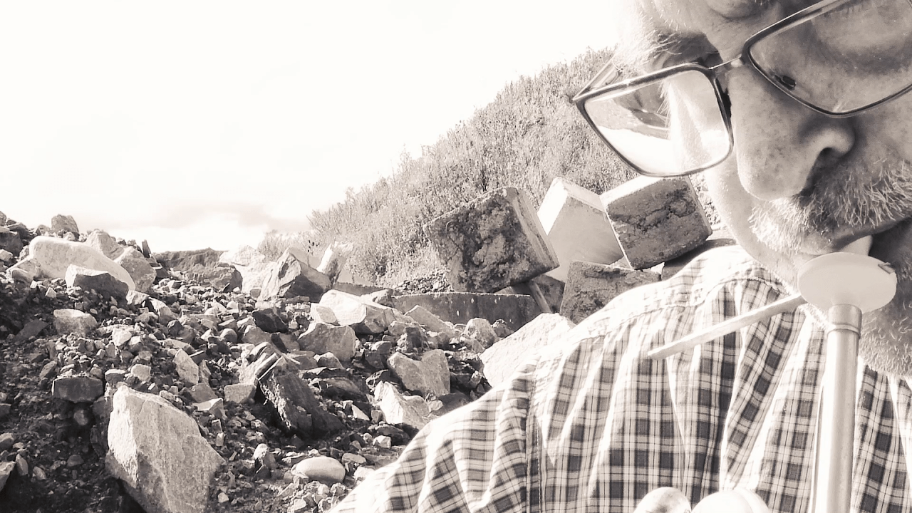 This piece is composed as a trio, with two other French horns playing in the stereo electronic track, one in the left channel and another in the right channel. All sounds were recorded at EMS in Stockholm and are organized according to degrees of granularity, using as a starting point the geological cycles of erosion and sedimentation of stone. An exception is made for one sound: the kalimba tine embedded in the custom-built mouthpiece, a leftover from Interplay, which triggers a very short resonance in the horn. The resonance was recorded and its spectrum expanded in the tape, punctuating the non-pitched material along the composition.